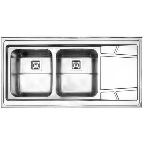 - دو حوضچه نامتقارن: حوضچه اصلی برای ظروف بزرگ، حوضچه کوچک برای سبزیها، میوه یا آبنما