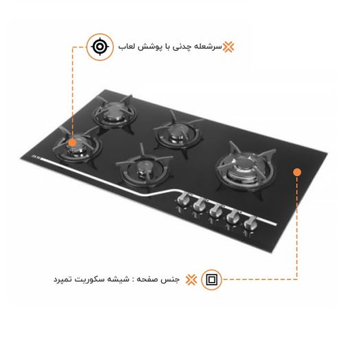 سایر توضیحاتسایز اجاق گاز: طول: 90 سانتی متر عرض: 51 سانتی متر - تعداد شعله : 5 شعله - نمای ظاهری: شیشه مشکی - جنس صفحه : شیشه - جنس شبکه: چدن - جنس ولوم: باکالیت - نوع سوخت: گاز - شعله پلوپز: دارد - جرقه زن اتوماتیک: دارد - ترموکوبل تاپ تایم: دارد - قطعات اصلی: ولوم، جرقه زن ، ترموکوبل ، سرشعله ساخت ایران